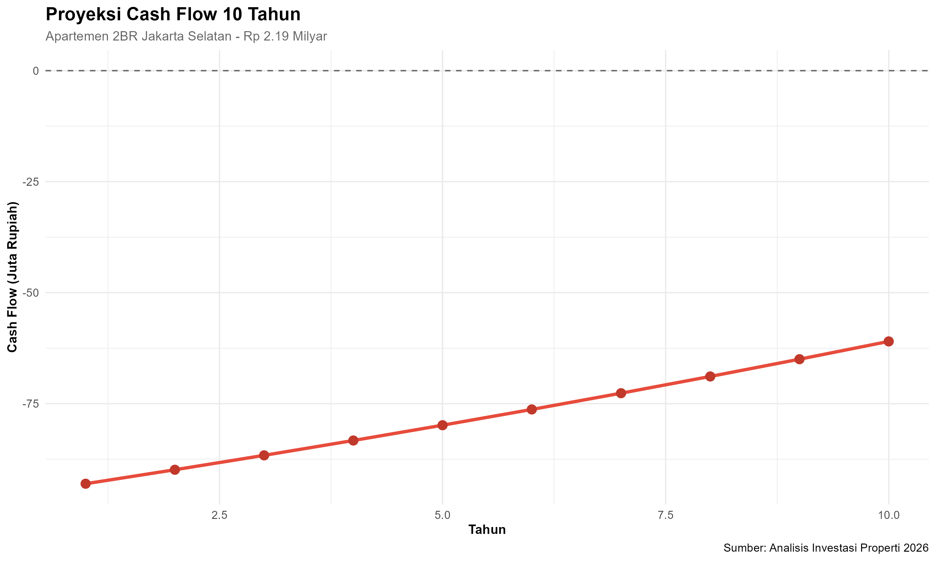 Visualisasi cash flow negatif Rp 6-9 juta/bulan selama 10 tahun